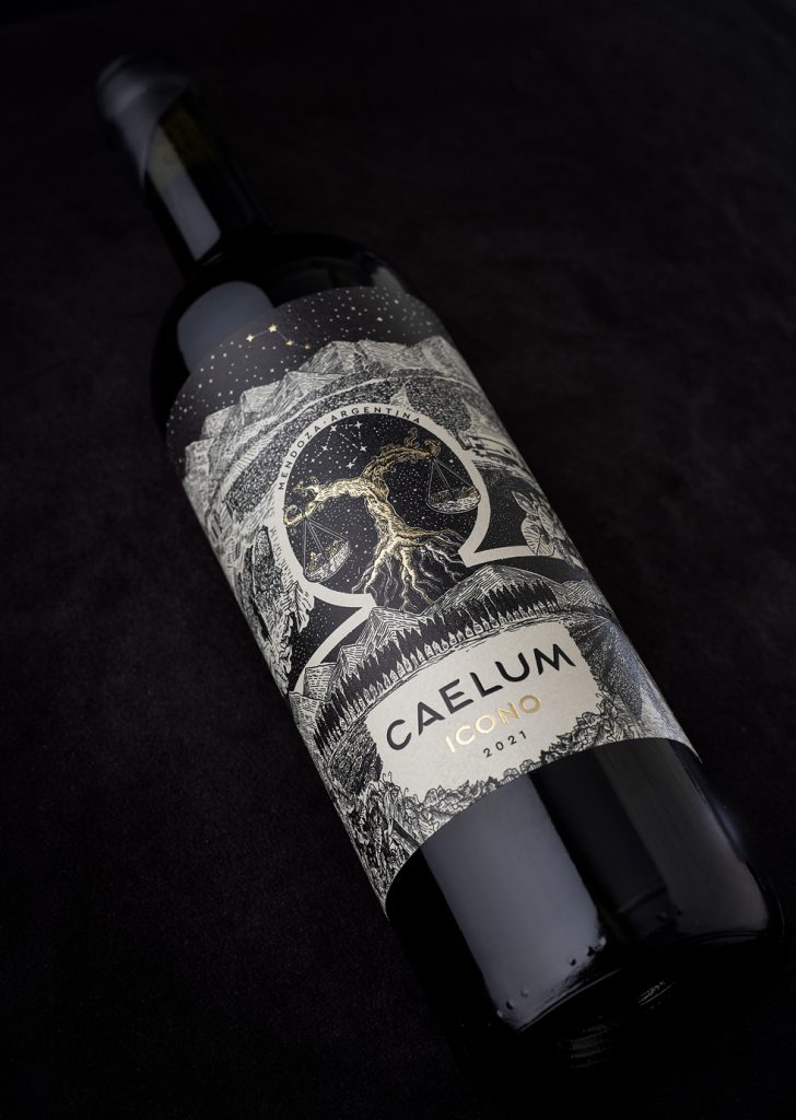 Luego de haber acompañado a la bodega desde los inicios en el desarrollo de su identidad visual y el diseño de sus líneas de vinos, fuimos convocados para crear la etiqueta de su vino ICONO. Conociendo de cerca la historia del proyecto, propusimos que este producto rinda homenaje a Mercedes, alma y fundadora de Caelum